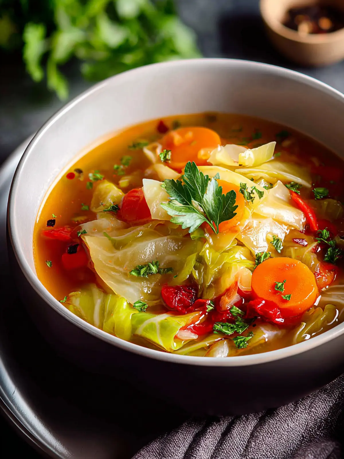 Nutritious Ingredients: Cabbage is low in calories but high in fiber and vitamins. It helps you feel full and supports your digestive health, making this soup an ideal meal option throughout the year.
